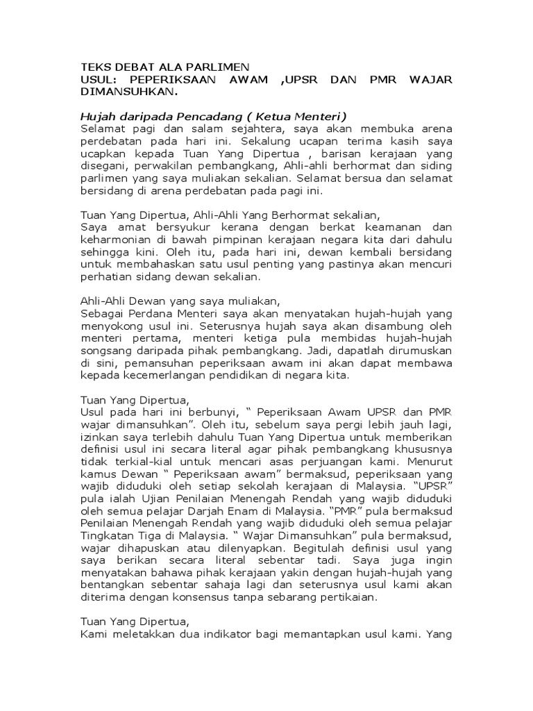 Contoh Teks Debat Ala Parlimen Pemansuhan Peperiksaan Pdf